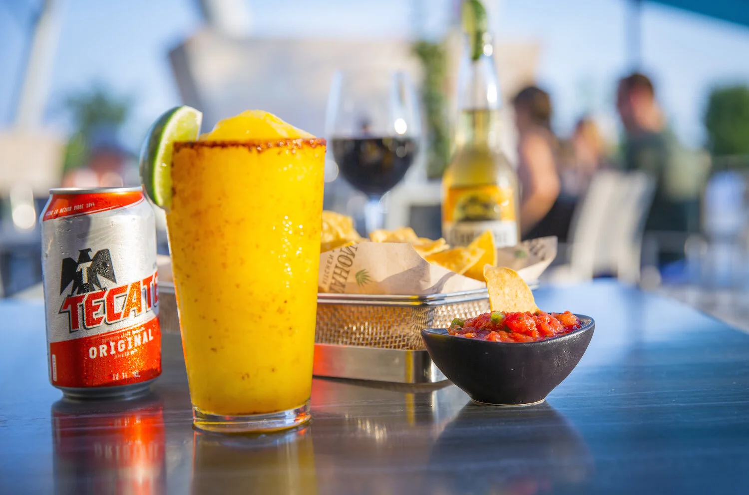 TECATE MICHELADA: house Michelada mix, Tecate Original Lager, ancho chile salt rim